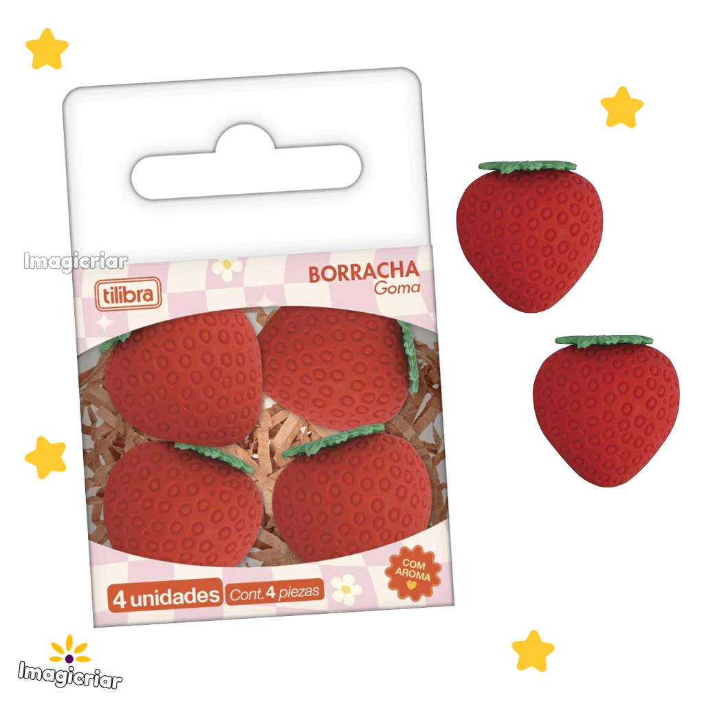 As Borrachas Be Berry! Tilibra são lindas borrachas 3D com formato de morango e cheirinho da fruta!