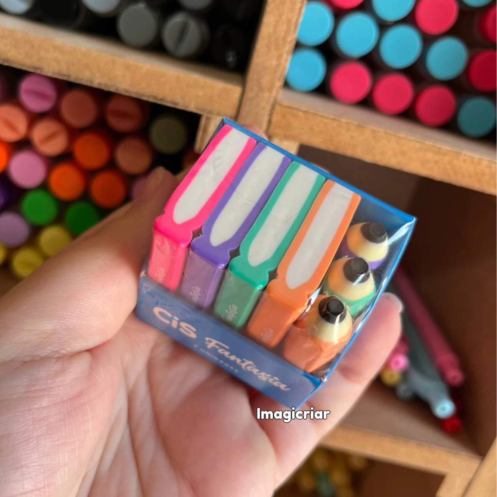 Borrachas que super combinam com os seus estudos! Estas são as Borrachas Livros CiS Fantasia, um conjunto com 7 unidades de borrachas, 4 em formato de mini livros e 3 em formato de mini lápis, em uma embalagem super fofa.