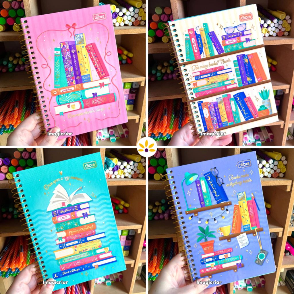 Um caderno menor perfeito para quem ama livros e leitura! Com espiral, em 4 opções de capas lindas e folhas brancas pautadas (com linhas) de gramatura 56g/m², esse caderno será o seu companheiro para todas as suas anotações!