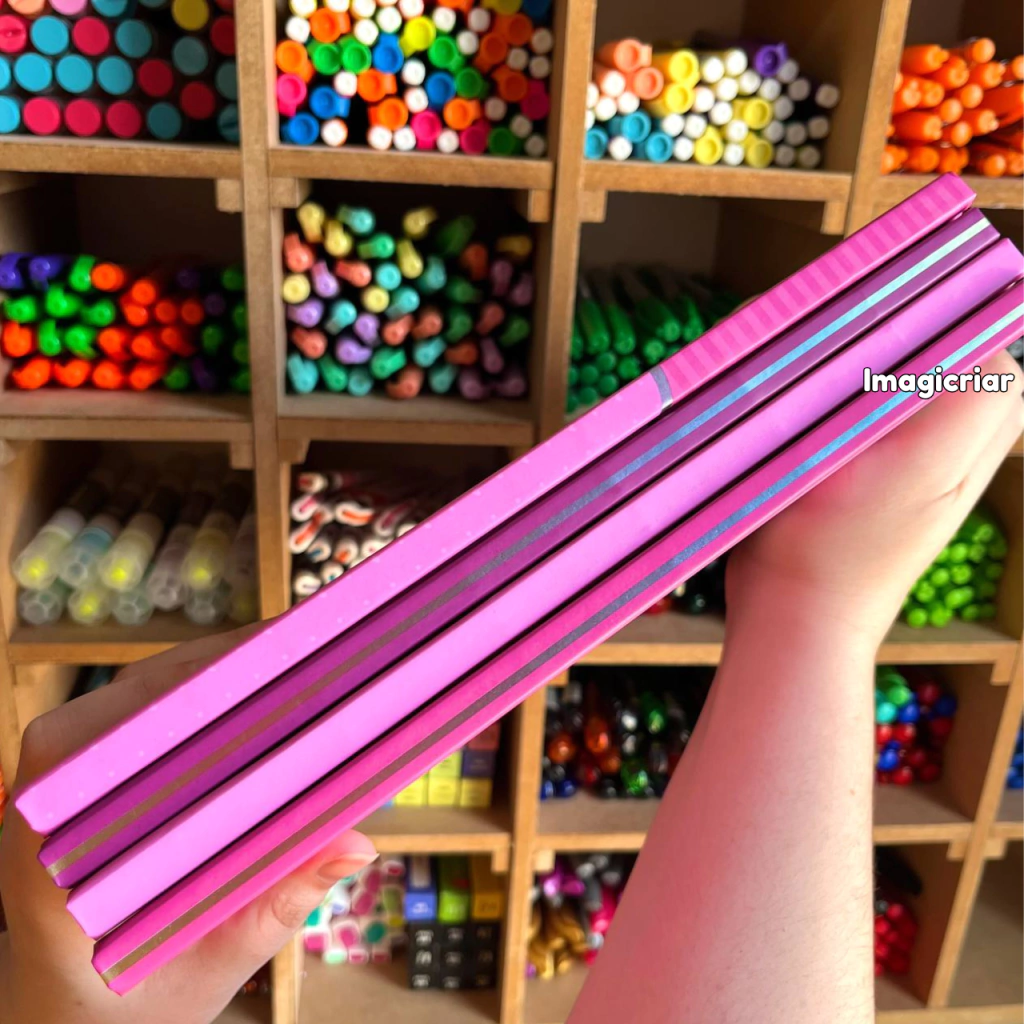 Mas atenção, este caderno é de brochura costurado (sem espiral) e de tamanho Colegial (17,6 X 23,9cm), sendo menor do que os cadernos convencionais em tamanho Universitário e maior que os cadernos 1/4.