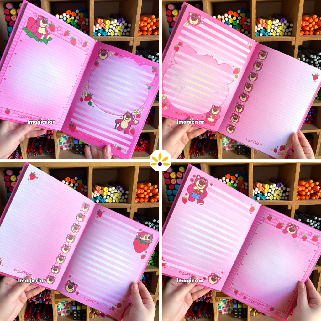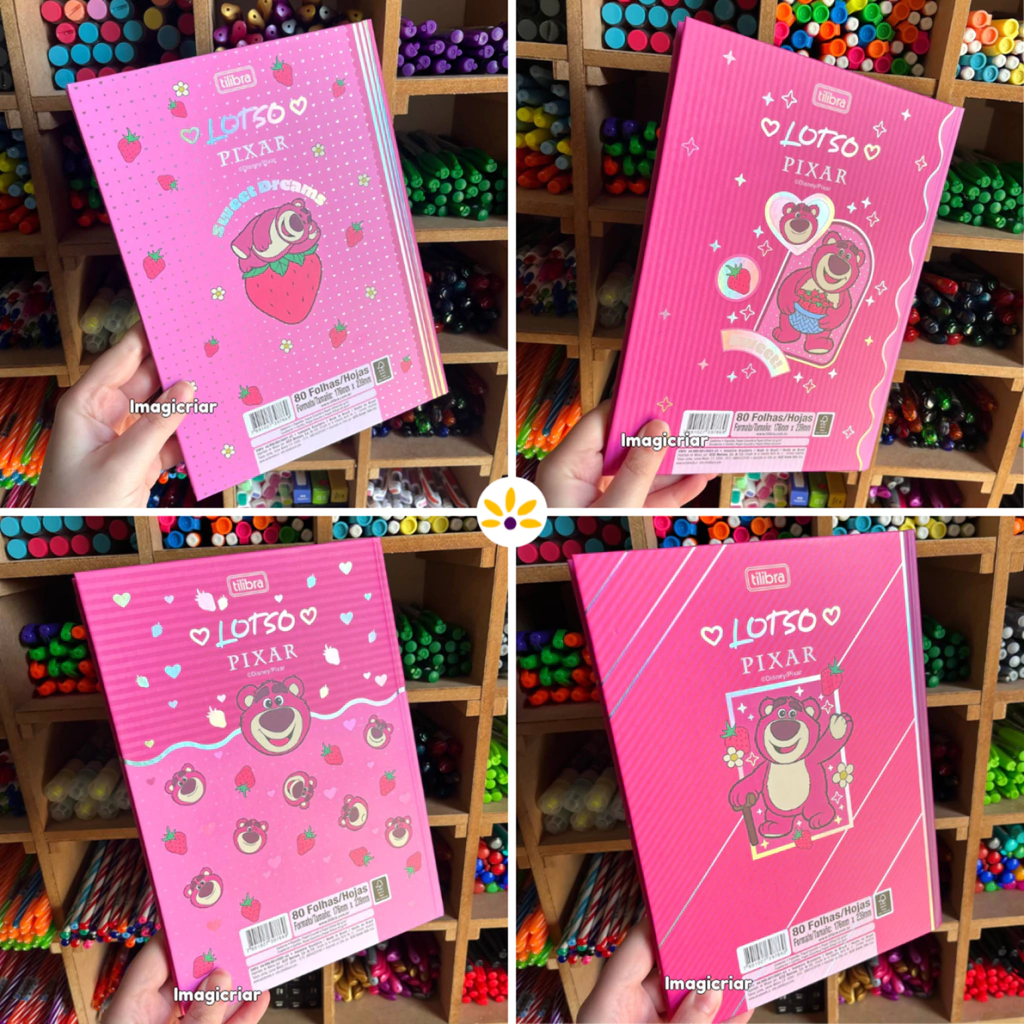 O caderno especial perfeito para todos que amam Toy Story da Pixar / Disney, trazendo o vilão do terceiro filme, o ursinho rosa Lotso! Com 4 opções de capas lindas e folhas coloridas super decoradas de gramatura 63g/m², esse caderno será o seu companheiro para todas as suas anotações!