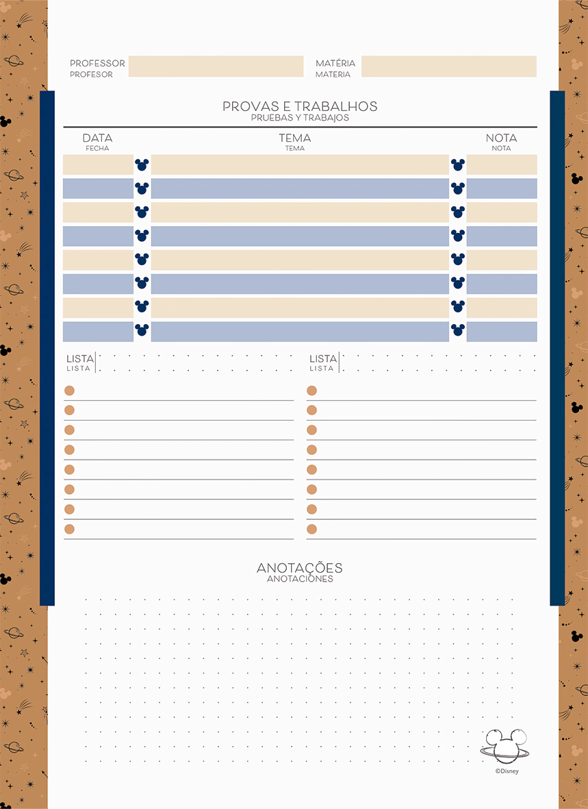 - Com 1 folha de rosto/índice decorada para adicionar informações;