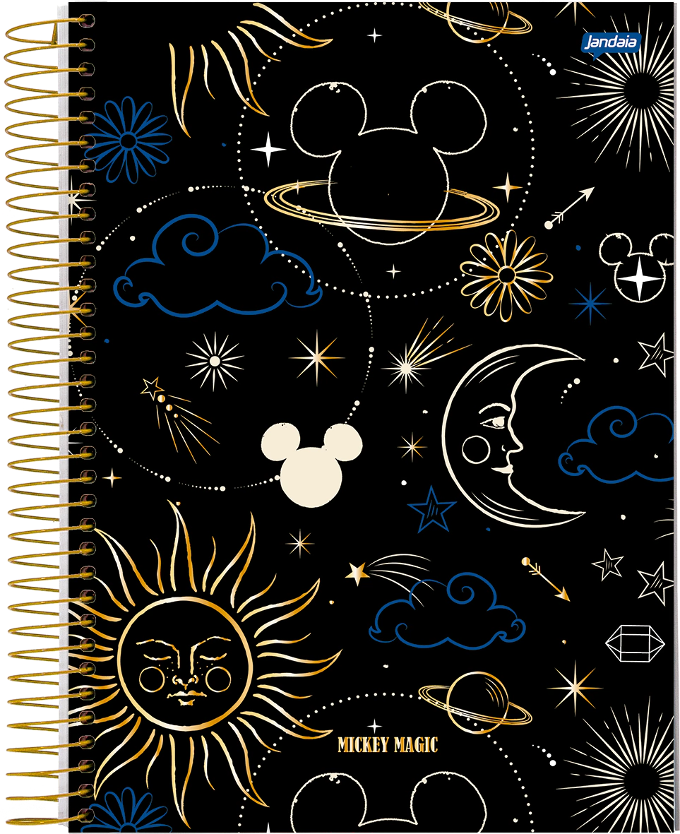 O caderno perfeito para quem adora o Mickey Mouse! Esta coleção conta com estampas na temática mística e com efeitos super holográficos!
