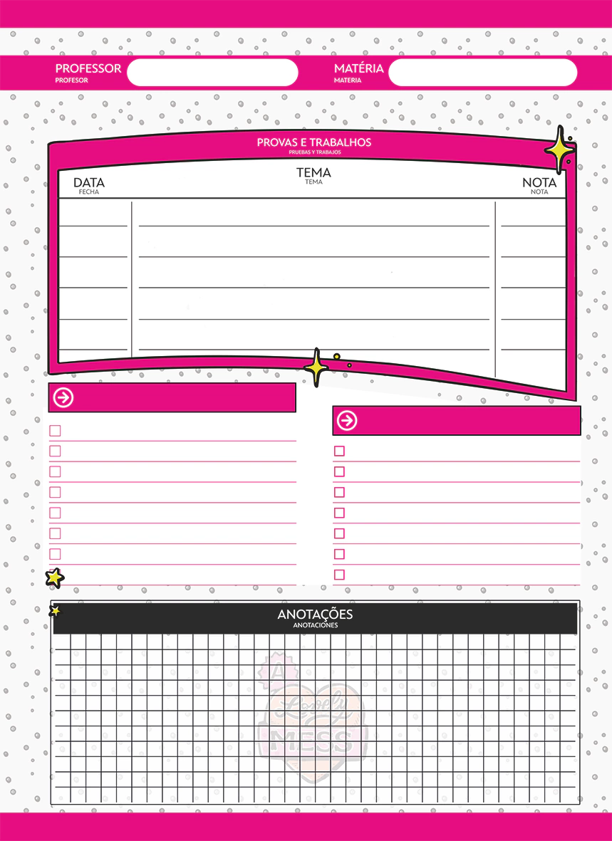 - Com 1 folha de rosto/índice decorada para adicionar informações;