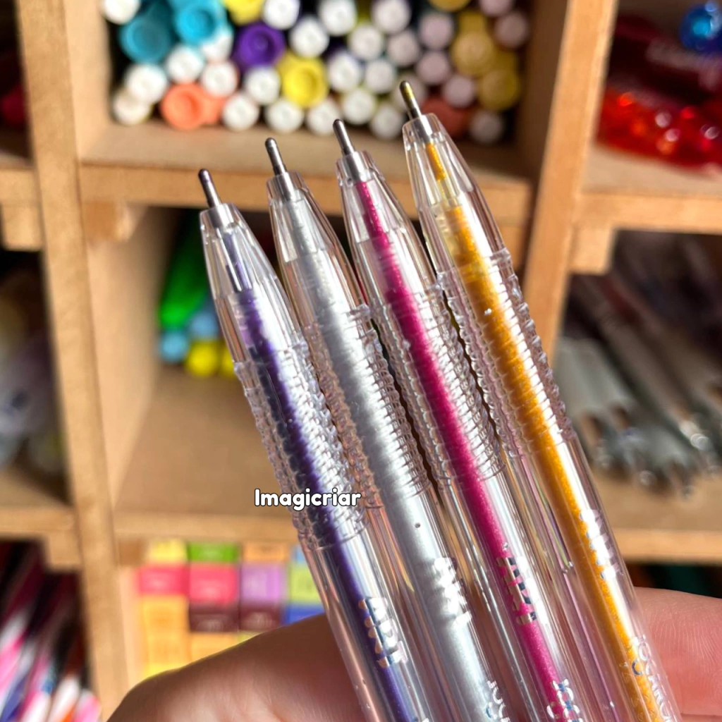A caneta gel Art possui pontinha 1.0 e cores lindas com glitter! São 4 opções de cores com muito brilho para deixar as suas anotações ainda mais lindas!