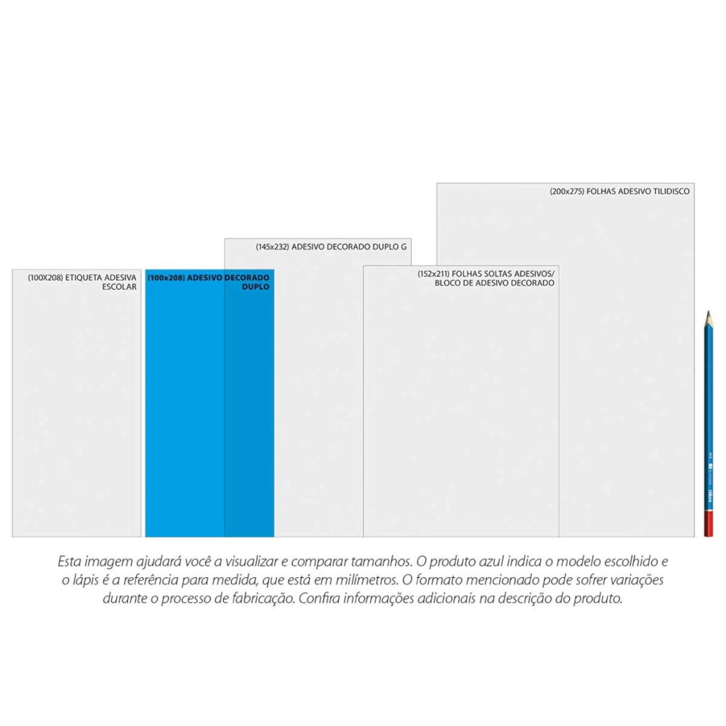 A cartela é uma folha dupla, havendo adesivos na frente e no verso.