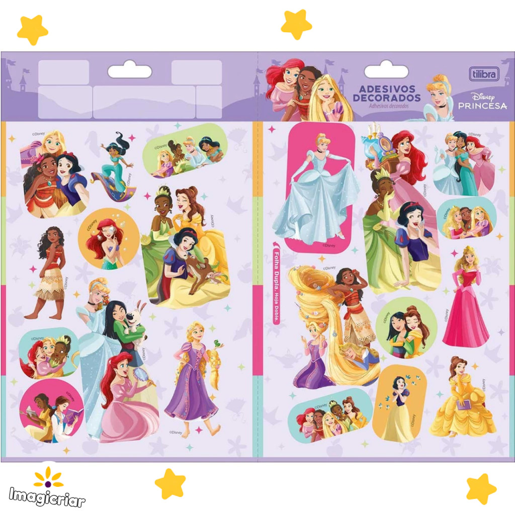 Quantidade: 01 cartela de adesivos Princesas Disney