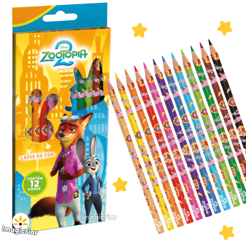 O lápis de cor perfeito para quem adora o filme Zootopia, da Disney! Com 12 lindas cores, estes lápis de cor Tris são arredondados, de resina, o que garante um apontar mais macia, e com corpinhos super decorados.