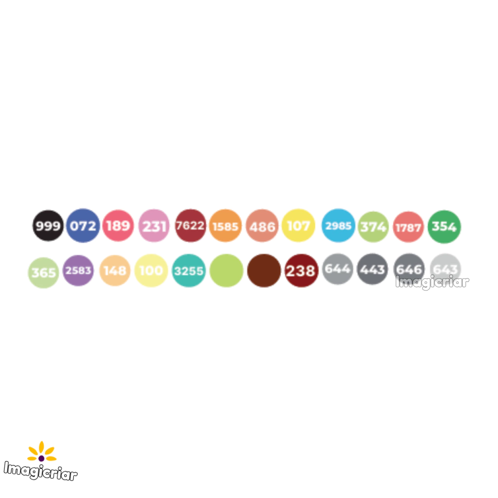 Todas as cores possuem numeração, facilitando a organização e escolha das cores ao utilizá-las. As cores das imagens podem sofrer pequenas alterações.