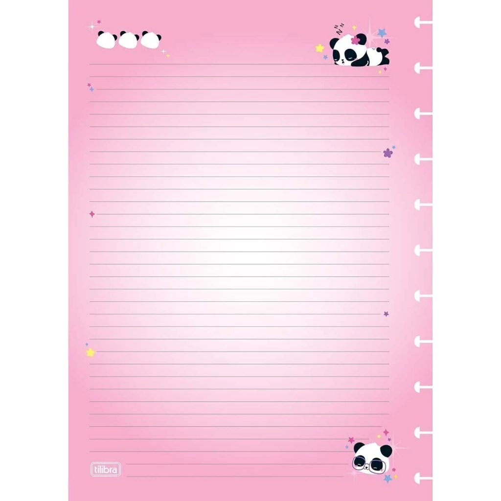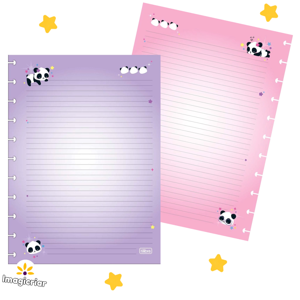 Refil pautado super decorado para o seu Tilidisco! São folhas soltas coloridas, com linhas e decoradas com o tema de pandinhas super fofos (na frente páginas roxas e no verso páginas rosas)!