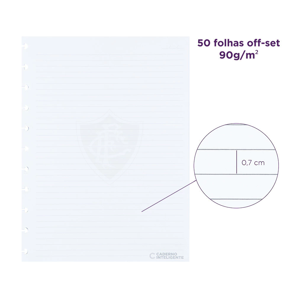 Refil Pautado Fluminense para o seu Caderno Inteligente! São folhas brancas com linhas pretas e marca d'água do Fluminense para sempre estarem com você quando precisar.